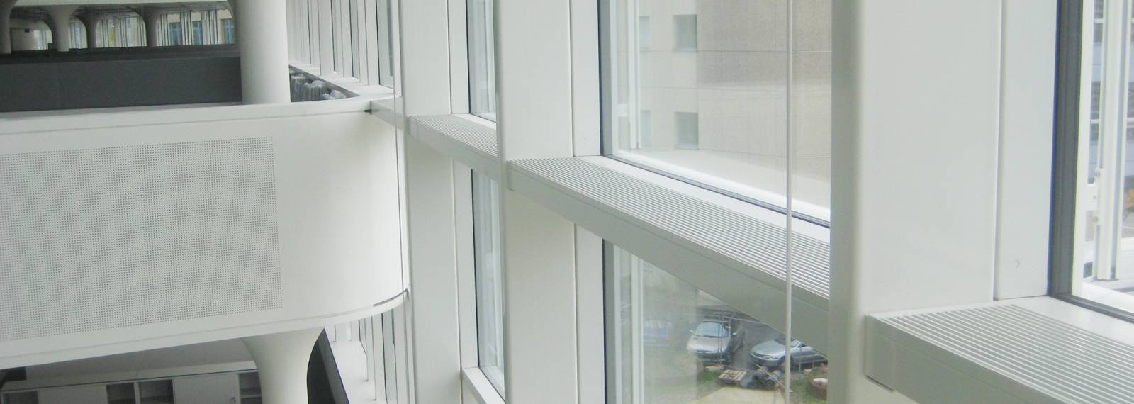 Pour les façades de fenêtres au sol, la charge de refroidissement restante peut être couverte par la gamme de produits COLD.