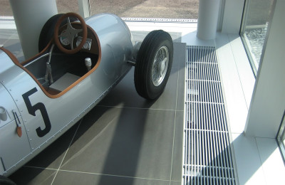 Begehbare Lineargitter oder Rollroste aus Aluminium, Chromstahl oder Holz.