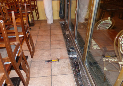 Bodenkanal ohne Abdeckung und Heizelement; Umbaubeginn